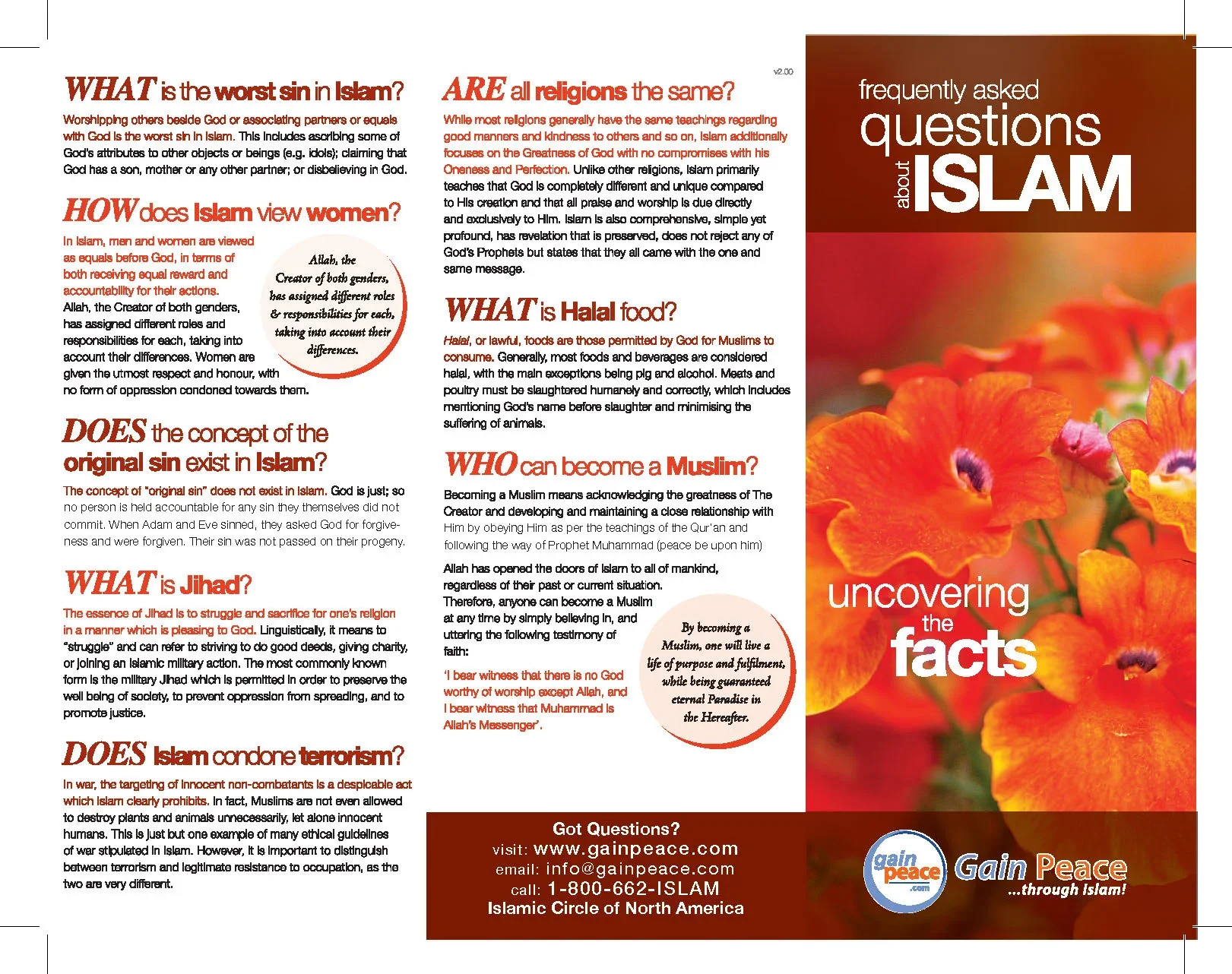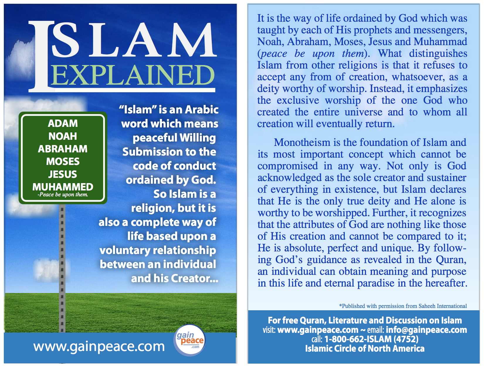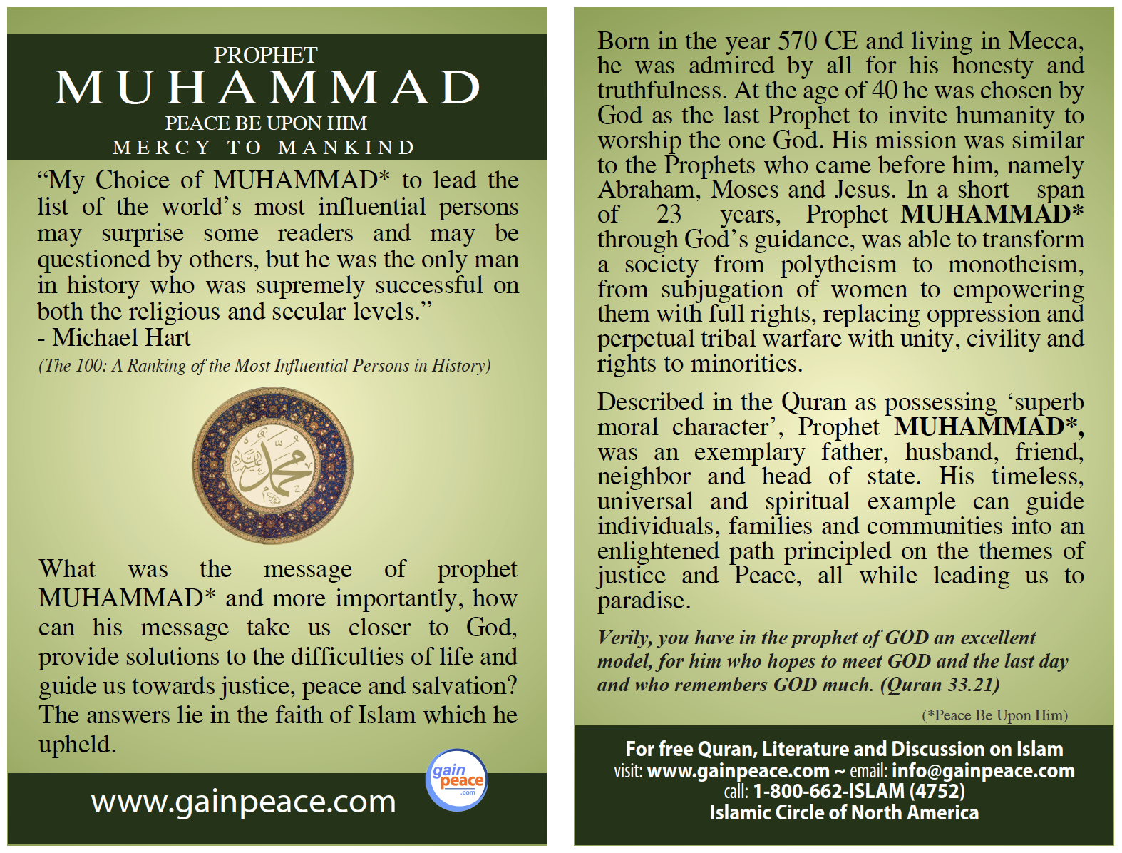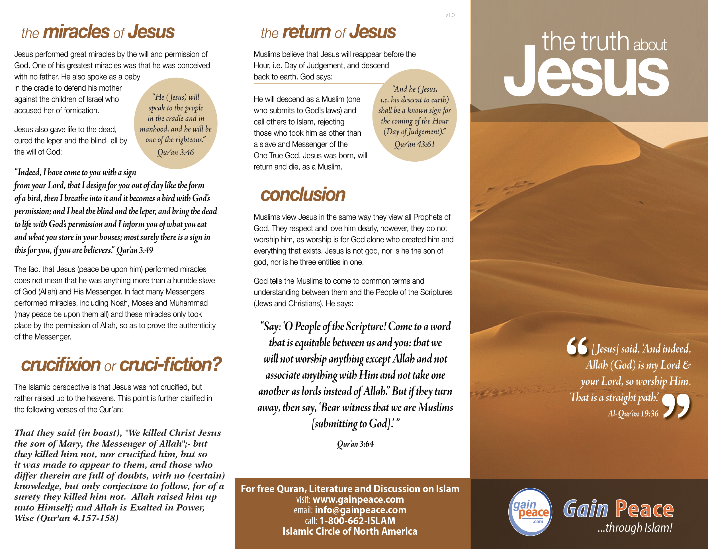 GAINPEACE STORE Categories: Select a Category POST CARDS PALESTINE CARDS ONE-MINUTE CARDS GIFT ITEMS FREE DOWNLOADS DOWNLOADS DAWAH BOOKS BROCHURES Equip & Empower Your Journey POST CARDS | PALESTINE CARDS | ONE-MINUTE CARDS | GIFT ITEMS | FREE DOWNLOADS | DOWNLOADS | DAWAH BOOKS | BROCHURES | A Teachers Guide to Muslim Students (FREE DOWNLOAD) $0.00 DOWNLOAD Added! Trinity OR Monotheism? from $2.50 Select Quantity 25 50 75 100 Purchase Added! Miracles of Jesus from $2.50 Select Quantity 25 50 75 100 Purchase Added! How to Lose Weight & Stay Healthy from $2.50 Select Quantity 25 50 75 100 Purchase Added! Introduction to Islam from $2.50 Select Quantity 25 50 75 100 Purchase Added! Did Jesus die on the Cross? - An Islamic Perspective from $2.50 Select Quantity 25 50 75 100 Purchase Added! Is Jesus God? from $2.50 Select Quantity 25 50 75 100 Purchase Added! Is Jesus the Son of God? from $2.50 Select Quantity 25 50 75 100 Purchase Added! Islam for Kids from $2.50 Select Quantity 25 50 75 100 Purchase Added! The hijab - Reflections by Muslim Women from $2.50 Select Quantity 100 75 50 25 Purchase Added! Women's Rights in Islam from $2.50 Select Quantity 100 75 50 25 Purchase Added! Frequently Asked Questions About Islam - Uncovering the Facts from $2.50 Select Quantity 100 75 50 25 Purchase Added! The Qur'an and Modern Science from $2.50 Select Quantity 100 75 50 25 Purchase Added! Addressing America's Drug Crisis from $2.50 Select Quantity 100 75 50 25 Purchase Added! Who Are Muslim Americans from $2.50 Select Quantity 100 75 50 25 Purchase Added! The Qur'an - The Final Revelation to Mankind from $2.50 Select Quantity 100 75 50 25 Purchase Added! Misconceptions About Islam - What Do You Really Know? from $2.50 Select Quantity 100 75 50 25 Purchase Added! How to Abolish Racism from $2.50 Select Quantity 100 75 50 25 Purchase Added! Prophet Muhammad (PBUH) from $2.50 Select Quantity 100 75 50 25 Purchase Added! Recipe for a Happy Marriage from $2.50 Select Quantity 100 75 50 25 Purchase Added! Racism to Brotherhood from $2.50 Select Quantity 100 75 50 25 Purchase Added! Why Islam? from $2.50 Sold Out Select Quantity 100 75 50 25 Sold Out Added! Prophet Abraham from $2.50 Select Quantity 100 75 50 25 Purchase Added! Selected Verses from the Quran from $2.50 Select Quantity 100 75 50 25 Purchase Added! Islam is Not a Religion of Extremism from $2.50 Sold Out Select Quantity 100 75 50 25 Sold Out Added! Harmony at Home from $2.50 Select Quantity 100 75 50 25 Purchase Added! Selected Sayings of Prophet Muhammad (PBUH) from $2.50 Select Quantity 100 75 50 25 Purchase Added! Visit to the Mosque (Pack of 25) from $2.50 Select Quantity 100 75 50 25 Purchase Added! About Islam - A Brief Introduction (Pack of 25) $2.50 100 75 50 25 Purchase Added! What is the Purpose of Life? from $2.50 Select Quantity 100 75 50 25 Purchase Added! The Truth About Jesus from $2.50 Select Quantity 100 75 50 25 Purchase Added! Jesus - A Prophet of Islam from $2.50 Select Quantity 100 75 50 25 Purchase Added! A Teachers Guide to Muslim Students $1.00 Purchase Added! Islam Explained - One Minute Card (100) $5.00 Purchase Added! Jesus - One Minute Card (100) $5.00 Purchase Added! Qur'an One - Minute Card (100) $5.00 Purchase Added! Prophet Muhammad - Minute Card (100) $5.00 Purchase Added! Recipe For a Happy Family - One Minute Card (100) $5.00 Purchase Added! MSA Dawah Kit from $385.00 Select Dawah Kit Without Banner With Banner Purchase Added! Ramadan Greeting Cards for non-Muslim Neighbors (5 cards) $5.00 Purchase Added! Ramadan - One Minute Card (100) $5.00 Purchase Added! Global Messenger - Muhammad (pbuh) $5.00 Purchase Added! ISLAM - Top 50 Questions - Answered $5.00 Purchase Added! Myths About Islam - Post Cards from $2.50 Select Quantity 100 75 50 25 Purchase Added! Who was Prophet Muhammad (PBUH) from $2.50 Select Quantity 100 75 50 25 Purchase Added! Read The Quran - Post Cards from $2.50 Select Quantity 100 75 50 25 Purchase Added! Muslim Women - One Minute Card (100) $5.00 Purchase Added! GainPeace Gift Bag $1.40 Purchase Added! Eid-Al-Adha Greeting Cards for non-Muslim Neighbors (5 cards) $5.00 Purchase Added! Muslims in America - Post Cards from $2.50 Select Quantity 100 75 50 25 Purchase Added! Dawah Pocket Guide $1.50 Purchase Added! Islam Info Package $18.00 Purchase Added! New Muslim Package $25.00 Purchase Added!